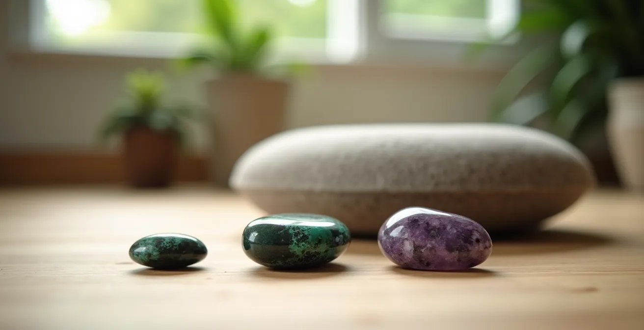 Pour un débutant qui cherche des résultats concrets, il est inutile de se perdre dans une collection de dizaines de pierres. Mieux vaut se concentrer sur trois archétypes répondant à des besoins fondamentaux : apaiser le stress, améliorer le sommeil et retrouver de l’énergie. L’approche pragmatique consiste à les choisir non pour une « vibration » abstraite, mais pour leurs caractéristiques sensorielles (poids, texture, température) et à les utiliser comme supports pour des exercices de pleine conscience.