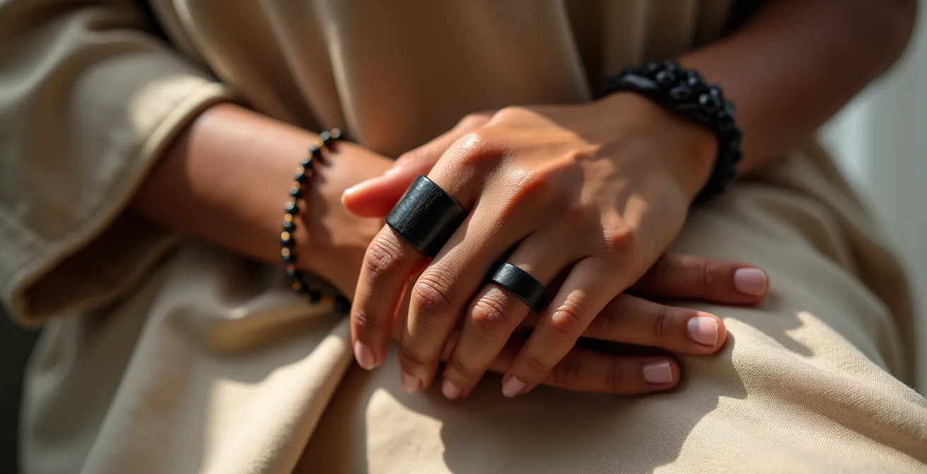 Cette différence fondamentale fait de l’ébène bien plus qu’une simple alternative à l’onyx. Tandis que l’onyx impose sa froideur minérale, l’ébène propose une chaleur organique. C’est un choix qui privilégie le bien-être et l’harmonie avec le corps. Comme le soulignent les artisans, les bijoux en ébène dégagent un fort caractère et une élégance indéniable, mais ils offrent en plus cette sensation de chaleur naturelle et ce toucher soyeux unique qui transforment complètement l’expérience du bijou, surtout lorsque le temps se rafraîchit.